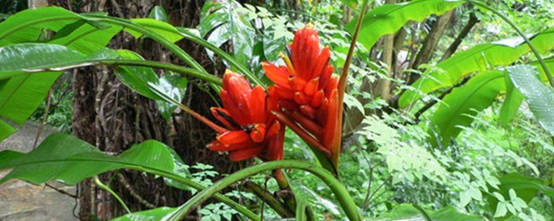 红花蕉会开花。它的花期在夏秋两季,花序会从叶腋间抽出,花葶比较直立,外面为鲜红色,里面为粉红色。每一个花序生通常着生3-4朵花,呈穗状排列。日常养护中,充足的光照有利于开花,同时,适当施肥,也能起到促花的效果。