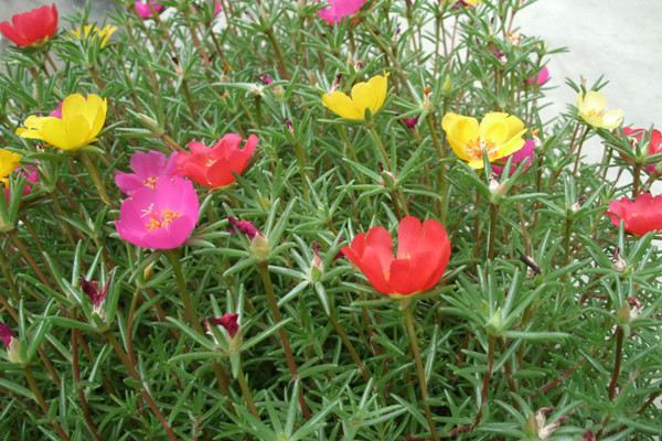 太阳花的花色也非常多,白的、粉的、红的、深红、紫红、淡黄,五颜六色的种在一起别提有多好看了。