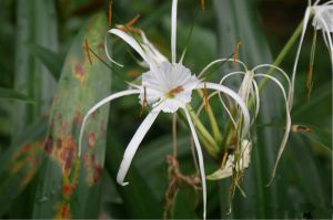 可爱文殊兰:与亚洲文殊兰的球型鳞茎有区别,并不是波浪形的叶片。植株高度约在60厘米以下,约分布于亚洲热带地区,其花朵略整齐于亚洲文殊兰,花朵多为一起开放,一般开花前花朵会下垂。