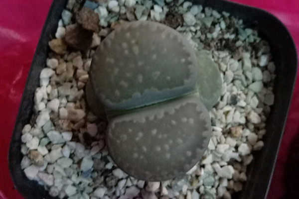 李夫人株高为2.5-3厘米,株幅为2-3厘米,这样看起来株型似乎较小,但这种植物极易群生多头,所以很快就会养成一大片。它的叶子为球果状,两片对生,顶部有略微凹陷的深褐色花纹,到了秋季会开雏菊状的白花。