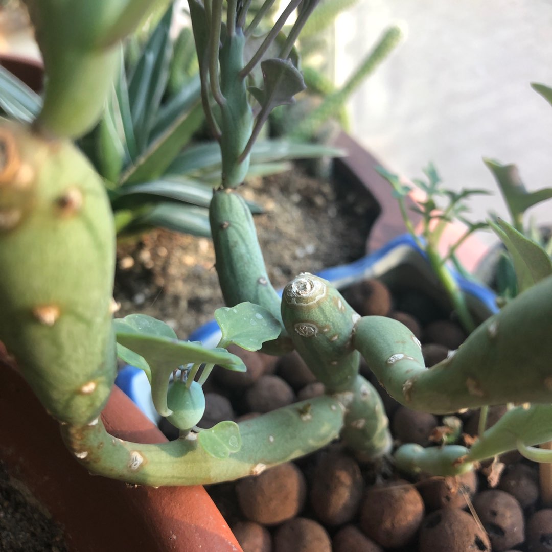 地龙又叫做泥鳅掌,它的植株高度通常在20公分左右,而整个植株的生长幅度也在20公分到30公分之间徘徊。并且地龙的茎干上带有节,模样为圆筒形,并且两边略微尖,长度在20公分到30公分之间,粗度为1.5厘米,颜色通常为灰绿色,上面还布满了青色的纵纹。另外,地龙的茎干上还会长出一些小叶子,通常呈线状生长。