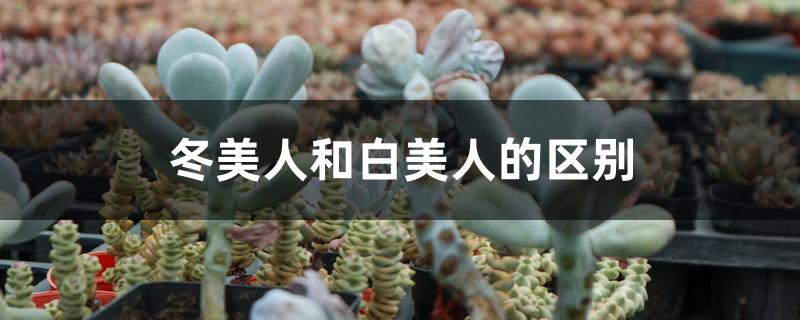 颜色不同:冬美人是浅灰绿色的,光照充足的话,叶子会变粉,白美人叶子为灰绿色,光照条件良好为蓝色,并且叶片上有白粉。