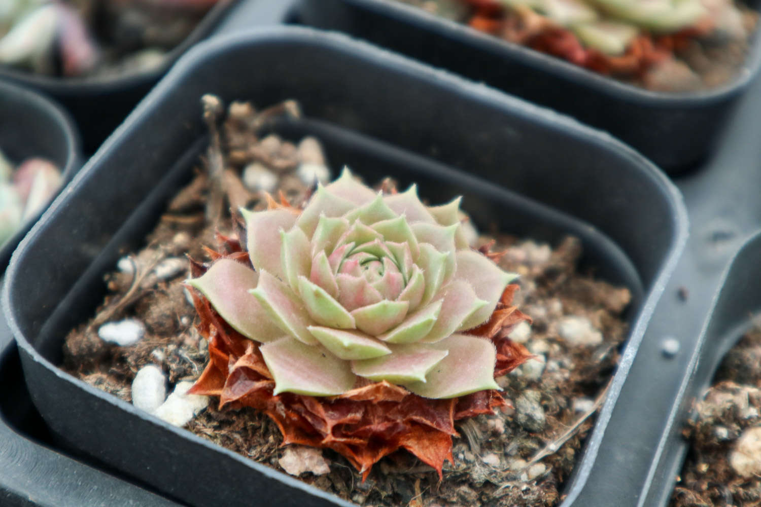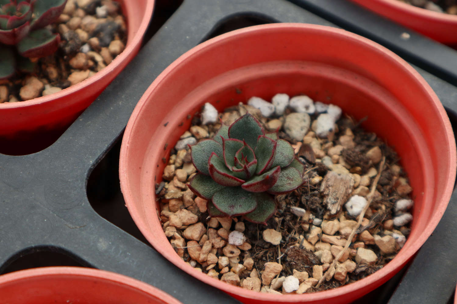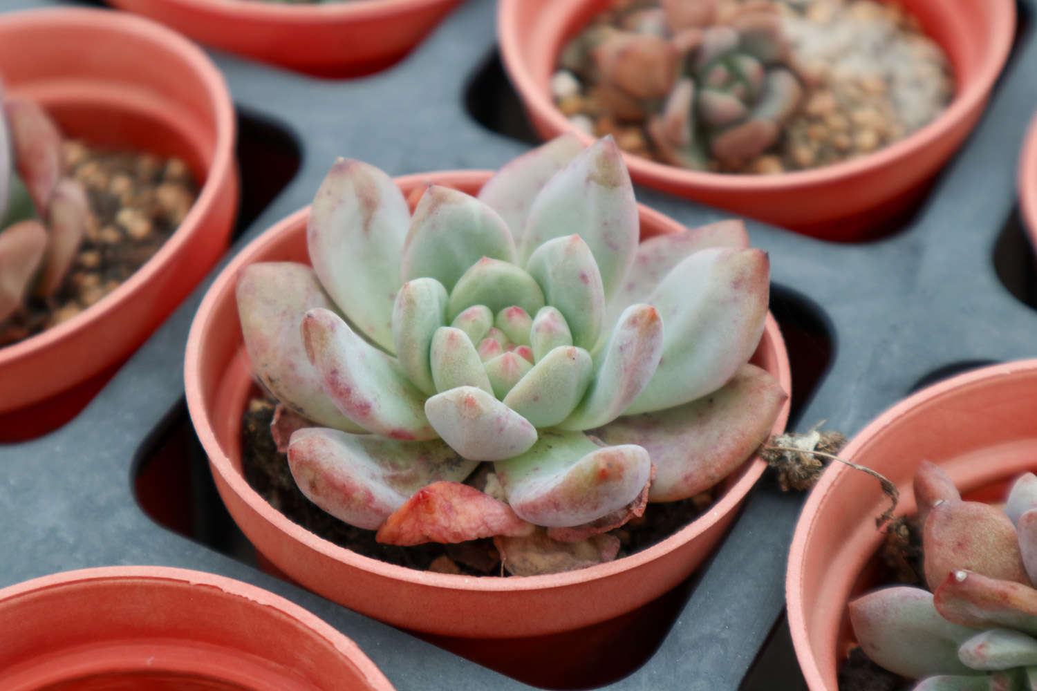 静夜看起来娇娇小小,叶瓣紧密的抱合在一起,看起来紧凑又美丽,日照充足的情况下,静夜的叶尖会变成红色的,看起来更加的可爱精致。