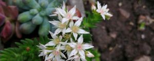 多年生迷你多肉植物,植株矮小,分枝与叶片很短,贴在肉质茎上,叶肉质轮生,一般旋转展开,叶尖经阳光照射边缘有红色,花顶生,白色,花期一般4~5月份。