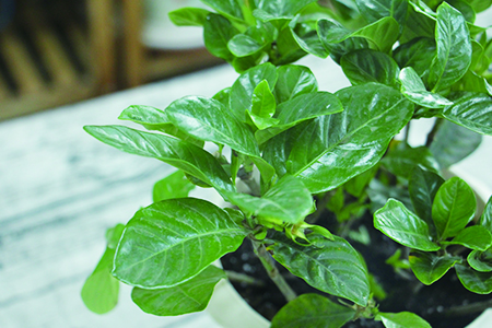 栀子花虽然也跟前者一样浓绿有光泽,但是它的叶子相对长一些,大约有12厘米左右。