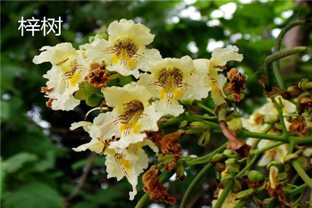 楸树的花色为浅粉色,内有紫红色斑点,楸树自花不孕,所以其往往只开花不结果,花期在4/5月份。梓树的花冠呈淡黄色或是黄白色,内有黄色条纹,花期比楸树长,果熟期在8-10月。