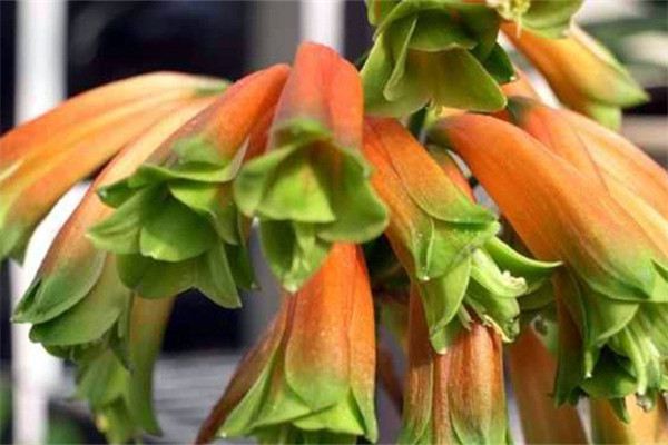有茎君子兰的花也是微微下垂的,和垂笑君子兰有些像,不过颜色是桔红色的。