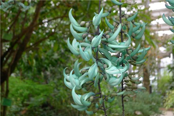 碧玉藤原名翡翠葛,是一种常绿木质藤本,碧玉藤是它常叫的名字。爪形花朵颜色从蓝绿色到薄荷绿各不相同,极不寻常的色彩几乎不同于任何植物。这使得它非常特别。