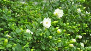 栀子花在刚开始出现花苞的时候是可以喷水的。这样可以有效增加空气湿度,有利于植株开花。不过在花苞开始展开之后要注意,不要将水喷到花苞里面,不然容易引起烂花。